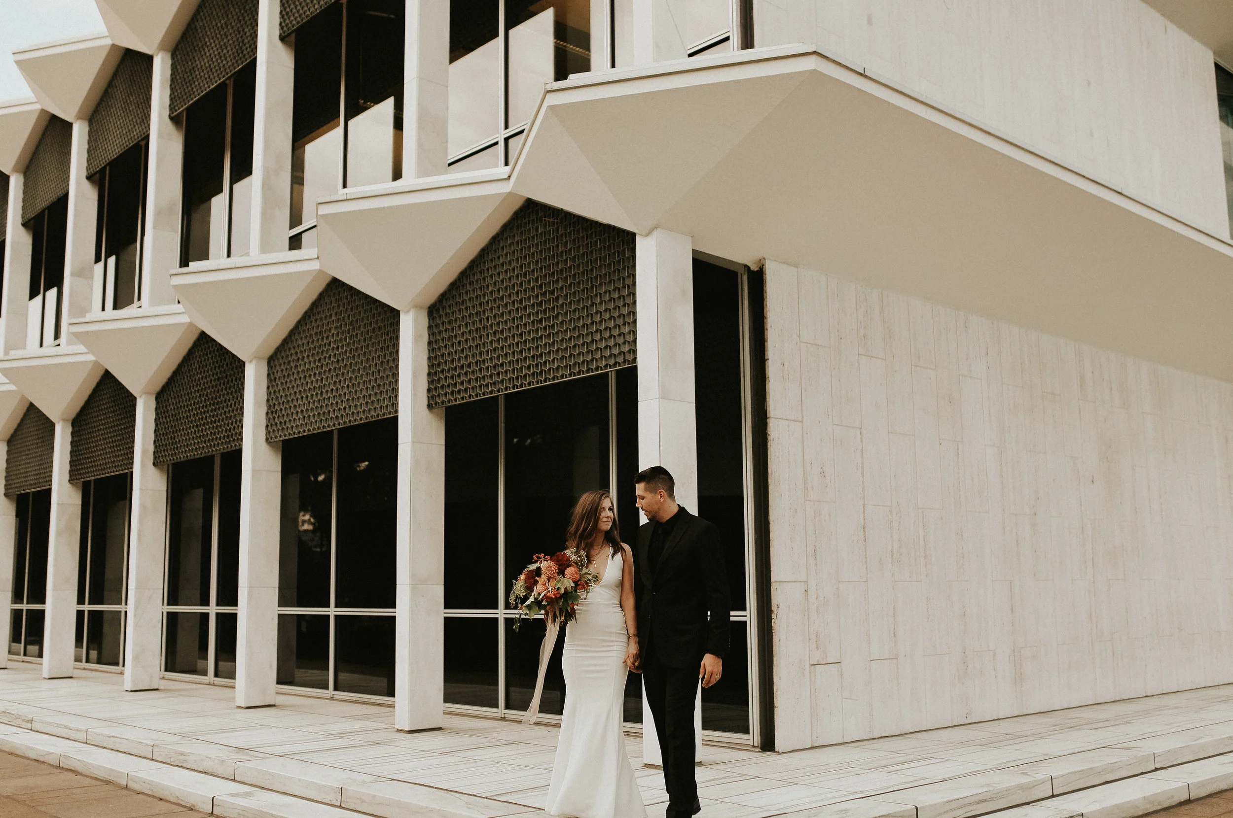 I had a vision of doing a more modern Detroit shoot with incredibly rich, autumn florals, dark blacks, leather, and clean lines. Immediately, I thought of Kathryn + Geoff. I love these two and their love for one another as well as their naturally modern feel to their style. When I reached out to them they were 10000% DOWN! YASS. I was so, so excited! It was perfect timing - just following their one year wedding anniversary and a perfect intro into the autumn season. We wandered around the Wayne State Campus in downtown and played with modern lines. Love these two and loved every part of this session! Thank you for making my modern, autumn inspired session dreams come true and happy, happy anniversary!! Xo!